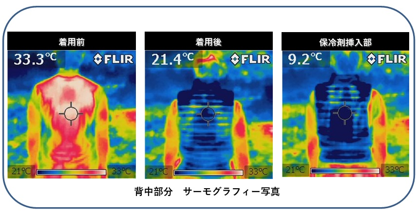 このスリムホワイト生地が夏場の直射日光を和らげ、背中の表面温度の上昇を10℃以上抑えます。