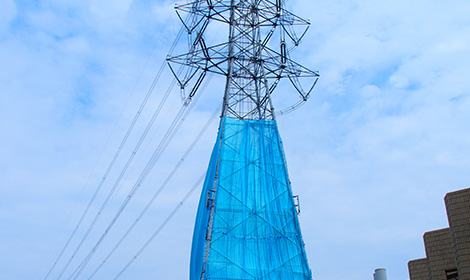 飛散防止ネットを塗装現場へ設置することで塗料の飛散を防止し、都市環境の維持に貢献しています。